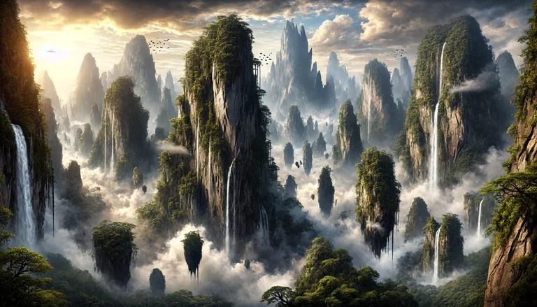 So schweben diese uralten Felsen in vollkommener Harmonie mit dem Bode, der sie trägt ohne sie zu berühren. Sie ruhen auf einem Gleichgewicht aus Anziehung und Abstoßung, gefangen in einem ewigen Tanz zwischen Himmel und Erde. Doch wehe, wenn dieses Gleichgewicht gestört wird. Als die Zwerge begannen, diese Kristalle aus den Felsen zu brechen, unterbrachen sie damit auch die Verbindung zur Erde – und so stürzten manche der schwebenden Berge aus den Wolken, rissen tiefe Wunden in den Boden und hinterließen tiefe Narben.